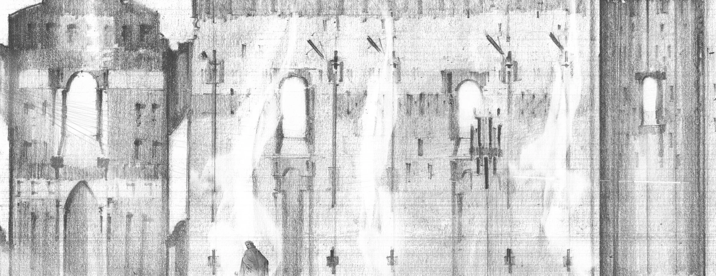 A vast hall. I was taken aback. Here, large wooden armatures held spools of thread by the hundreds. As I looked up, on the other side of where I stood, a small opening let in hundreds of threads, where they were then spooled on the loom sitting at the center of this space. The one thread that guided me here had been loose.